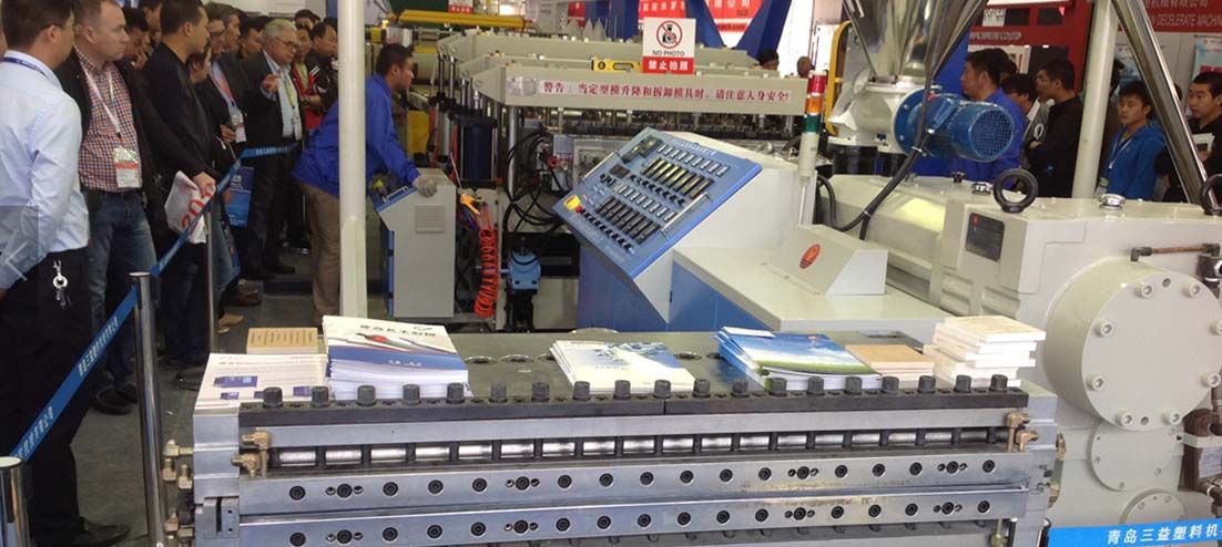 2020中國(guó)國(guó)際橡塑展Chinaplas2014 上海展 三益現(xiàn)場(chǎng)生產(chǎn)PVC發(fā)泡板設(shè)備(產(chǎn)量400kg/h)